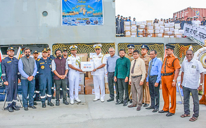දිවයිනට පැමිණි ඉන්දීය යුද නෞකා වෙතින් අයහපත් කාලගුණික තත්වයෙන් ආපදාවට පත් ජනතාව වෙත මානුෂීය ආධාර