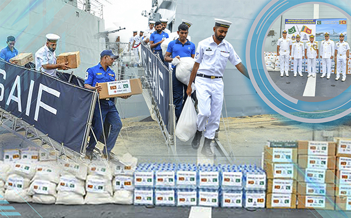 දිවයිනට පැමිණි පාකිස්තානු නාවික හමුදාවේ PNS SAIF යුද නෞකා වෙතින් අයහපත් කාලගුණික තත්වයෙන් ආපදාවට පත් ජනතාව වෙත මානුෂීය ආධාර
