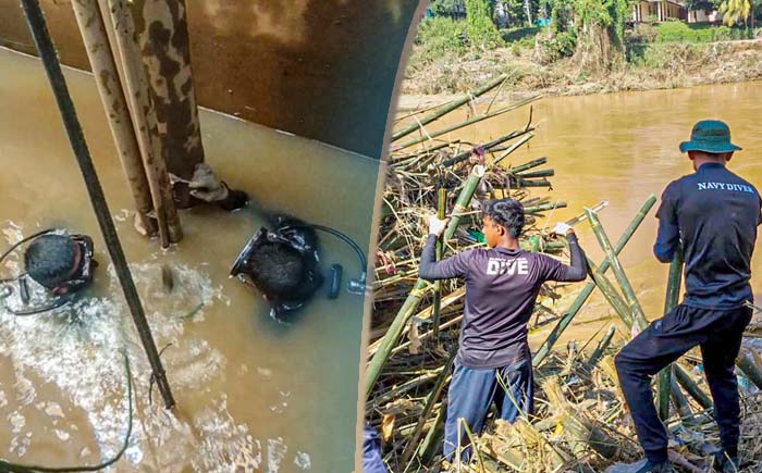 නාවික හමුදාව මඟින් ගාල්ල සහ කුරුණෑගල ප්රදේශයේ පාලම් තුල සිරවූ දෑ ඉවත් කිරීමේ මෙහෙයුමක්