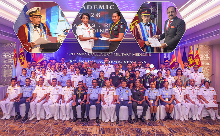 The 9th Annual Academic Sessions of the Sri Lanka College of Military Medicine (SLCOMM) were held from 13 to 15 Feb 26 at the Eagles’ Ballroom of Water’s Edge Battaramulla, under the theme ‘Back to Basics: Reinforcing Foundational Readiness in Military Medicine