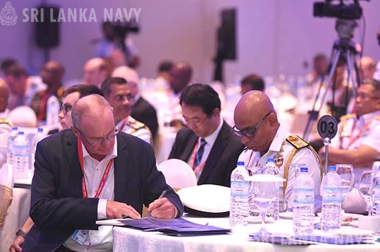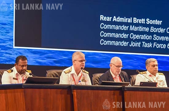 ඒ අනුව, ‘Marine Environment Under Changing Dynamics’ යන තේමාවට අදාලව මහාචාර්ය Ronan Long (Director, WMU- Sasakawa Global Ocean Institute) ගේ මෙහෙයවීමෙන් පැවැත්වුණු සාකච්ඡා මණ්ඩපයේදී; Enhansing Civil Military Cooperation to face challenges in preserving the Marine Environment යන තේමාව යටතේ, රියර් අද්මිරාල් Brett Sonter (Commander, JATF Operation Sovereign Borders) විසින්ද, Adopting forward thinking policies: formulation of Actionable Strategies to address pressing marine environment challenges through regional and extra regional partnerships යන තේමාව යටතේ, රියර් අද්මිරාල් Faisal Amin (Commander Coastal Areas, Pakistan Navy) විසින් සහ Marine environment protection in Sri Lanka : Strengthening Naval, Air Force and Coast Guard Joint operations යන තේමාව යටතේ කොමාණ්ඩර් අමිල ප්රසංග හා වින්ග් කොමාණ්ඩර් ගයාන් බෝවත්ත විසින් නිබන්ධන ඉදිරිපත් කිරීම් මඟින් සම්මන්ත්රණය වෙත විද්වත් කරුණු ඉදිරිපත් කිරීම සිදු කෙරිණි.