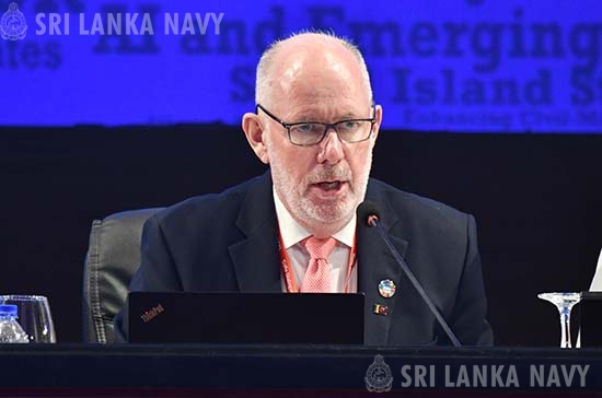 ශ්රී ලංකා නාවික හමුදාව, ආරක්ෂක අමාත්යාංශය හා එක්ව දොළොස්වැනි (12) වරටත් සංවිධානය කරනු ලබන ගාලු කථීකාව ජාත්යන්තර සමුද්රීය සම්මන්ත්රණයේ පළමු සැසිය, ‘වෙනස්වන ගතිකත්වයන් හමුවේ ඉන්දීය සාගර කලාපීය සමුද්රීය පරිසරය’ (Marine Environment Under Changing Dynamics) යන තේමාවට අදාලව, මහාචාර්ය Ronan Long ගේ මෙහෙයවීමෙන් පැවැත්විණි.