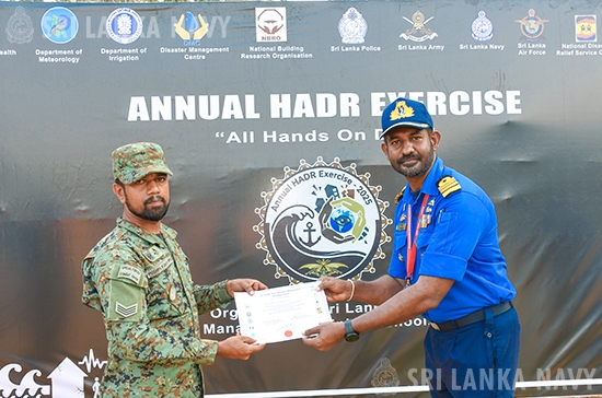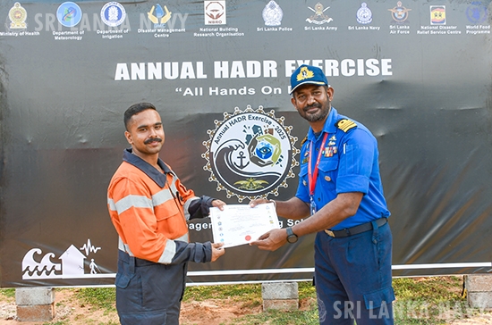 ඒ අනුව, මෙම පුහුණු අභ්‍යාසයේ අවසන් දිනයේදී නායයෑම්, ගොඩනැගිලි කඩාවැටීම් සහ ගංවතුර ආපදා අවස්ථාවන්හිදී, ආපදා සූදානම, සම්බන්ධීකරණය සහ ක්‍ෂණිකව ප්‍රථිචාර දැක්වීමේ ක්‍රමවේද පිළිබඳව ප්‍රායෝගික අභ්‍යාස සිදුකිරීම, ඒ වෙනුවෙන් ස්ථාපිත පුහුණු සමාකෘති ආධාරයෙන් සිදුකෙරුණු අතර; ත්‍රිවිද හමුදාව, පොලීසිය, ආපදා කළමනාකරණ මධ්‍යස්ථානය, ජාතික ආපදා සහන සේවා මධ්‍යස්ථානය, ගිනි නිවීමේ හමුදාව සහ සුව සැරිය ගිලන් රථ සේවය යන පාර්ශ්වයන් එක්ව, අන්තර් ආයතන සම්බන්ධීකරණයෙන් ඒකාබද්ධ මානුෂීය ආධාර සහ ආපදා සහන ප්‍රායෝගික අභ්‍යාස සාර්ථකව සිදු කෙරිණි.