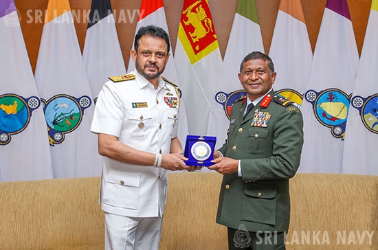 ශ්රී ලංකාවේ නිල සංචාරයක නිරත මාලදිවයින් ජාතික ආරක්ෂක බලකායේ ප්රධානී, මේජර් ජෙනරාල් Ibrahim Hilmy (Chief of Defence Force of Maldives National Defence Force -MNDF), 2025 දෙසැම්බර් මස 01 දින නිල හමුවක් සඳහා නාවික හමුදා මූලස්ථානයේදී නාවික හමුදා මාණ්ඩලික ප්රධානී රියර් අද්මිරාල් ඩේමියන් ප්රනාන්දු හමුවිය.
