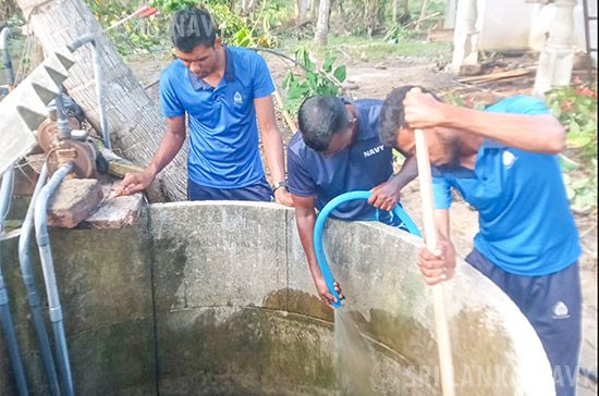 ඒ අනුව, ජල ගැලීම් හේතුවෙන් භාවිතා කිරීමට නොහැකි මට්ටමේ ඇති පානීය ජල ළිං පිරිසිදු කිරීම් යටතේ හලාවත මොරතොට ප්රදේශයේ පානීය ජල ලිං 04ක්, ගම්පහ ඔරුතොට ජල ලිං 10ක්, මන්නාරම ශාන්ත අන්තෝනි විද්යාලයේ පානීය ජල ලිං 01ක්, අනුරාධපුර ජයන්තිපුර පානීය ජල ලින් 04ක්, හොරොව්පොතාන ප්රදේශයේ පානීය ජල ලින් 08ක්, සන්ගිලිකනදරාව ප්රදේශයේ පානීය ජල ලින් 08ක්, කාගම හයේ ඇල ප්රදේශයේ පානීය ජල ලින් 04ක්, මහවිලච්චිය එකේ ඇල ප්රදේශයේ පානීය ජල ලින් 01ක් වශයෙන් පානීය ජල ලින් 40 ක් පිරිසිදු කිරීම නාවික හමුදාව විසින් සිදුකෙරිණි.