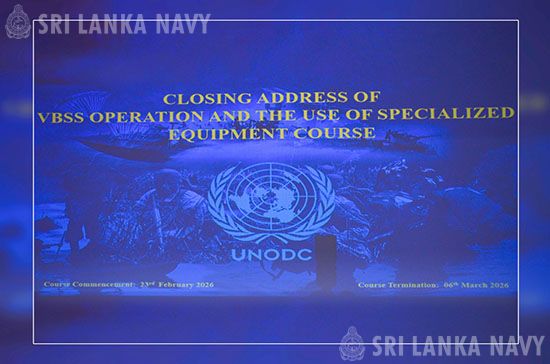 එක්සත් ජාතීන්ගේ මත්ද්‍රව්‍ය හා අපරාධ මැඩපැවැත්වීම සම්බන්ධ කාර්යාලය මඟින් (United Nations Office on Drugs and Crime - UNODC). ත්‍රීකුණාමලය, විශේෂ යාත්‍රා බලඝණ මූලස්ථානයේදී පවත්වන ලද යාත්‍රාවන් වෙත ප්‍රවිශ්ඨවීම, සෝදිසි කිරීම සහ අත්පත් කරගැනීමේ ක්‍රමවේදයන් සම්බන්ධ කලාපීය පුහුණු පාඨමාලාව සහ විශේෂිත උපකරණ පරිහරණය පිළිබඳ පුහුණු පාඨමාලාව සාර්ථකව අවසන් වූ අතර, එහි සහතික ප්‍රධානය, 2026 මාර්තු මස 06 වැනි දින විශේෂ යාත්‍රා බලඝණ මූලස්ථානයේදී සිදුකෙරිණි.