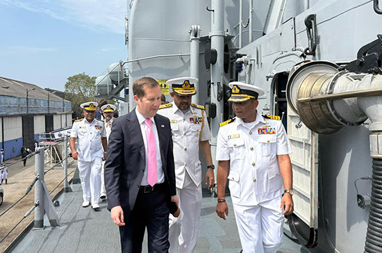 විශේෂ නියෝජිත ගෝර් මහතා, SLNS ගජබාහු නෞකාවේදී නාවික හමුදා මාණ්ඩලික ප්රධානී රියර් අද්මිරාල් ඩේමියන් ප්රනාන්දු මහතා හමුවිය. කලින් එක්සත් ජනපද වෙරළාරක්ෂක බලකායේ කොටසක් වූ සහ දැන් ශ්රී ලංකා නාවික හමුදා සේවයේ නියුතු මෙම නෞකාව, අප අතර පවතින දිගුකාලීන සමුද්රීය හවුල්කාරිත්වයේ ශක්තිය සංකේතවත් කරයි. එසේම, සිව්වන මින් පෙර එක්සත් ජනපද වෙරළාරක්ෂක කටර් නෞකාවක් වන ex-Decisive නෞකාව පැසිෆික් සාගරය හරහා දැන් ශ්රී ලංකාව වෙත ගමන් කරමින් සිටින අතර, එය අපගේ සමුද්රීය ආරක්ෂක හවුල්කාරිත්වය සහ කලාපීය සහයෝගීතාව තවදුරටත් ශක්තිමත් කරනු ඇත.