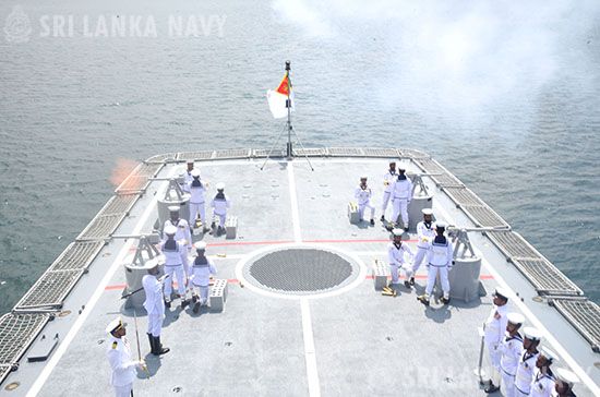 இலங்கையை கட்டியெழுப்புதல்’ என்ற கருப்பொருளின் கீழ் கொண்டாடப்பட்ட 78வது சுதந்திர தினத்தை முன்னிட்டு, கடற்படைத் தளபதியின் அறிவுறுத்தல்கள் மற்றும் வழிகாட்டுதலின் பேரில், இலங்கை கடற்படை இன்று (2026 பெப்ரவரி 04,) மதியம் 1200 மணிக்கு காலி முகத்திடலில் உள்ள இலங்கை கடற்படைக் கப்பலான சயுரவிலிருந்து தேசத்திற்கு மரியாதை செலுத்தும் வகையில் 25 துப்பாக்கிச் சூட்டு மரியாதை செலுத்தப்பட்டது. சயுரவின் கட்டளை அதிகாரி கெப்டன் கொன்ட் அன்னதுகொடவின் தலைமையில் இந்த மரியாதை செலுத்தப்பட்டது.