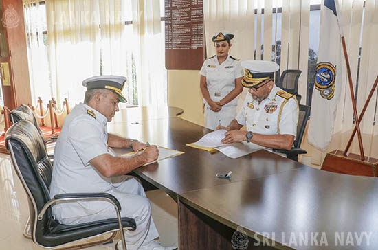 The incoming Commandant VNF was received at the Volunteer Naval Force Headquarters in accordance with time-honoured naval traditions. Thereupon, his predecessor, Rear Admiral HNS Perera, formally handed over the duties and responsibilities of the appointment to Rear Admiral Jagath Kumara.