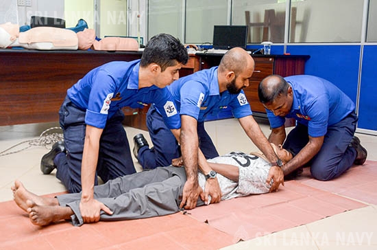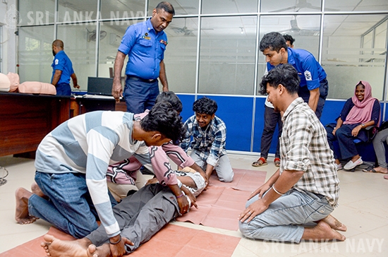 The Sri Lanka Navy organized a Basic First Aid, Basic Life Support (BLS), and Water Safety Training Programme for students of the Ocean University of Sri Lanka, Trincomalee Regional Centre on 16 Oct 25.