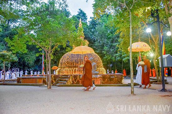 The Commander of the Navy along with senior officers from the Navy Headquarters, officers of the Naval Buddhist Association, naval personnel from the Southern Naval Command and devotees from the area attended in these spiritual events.