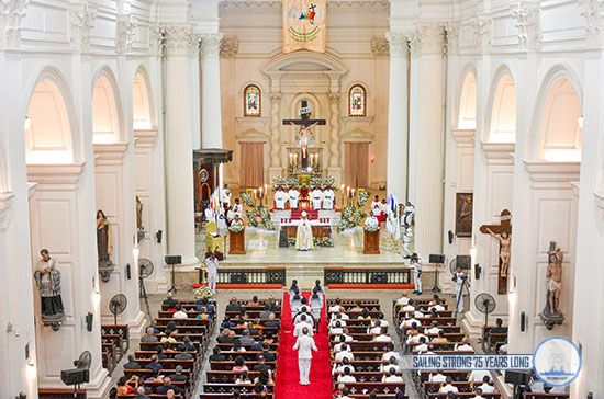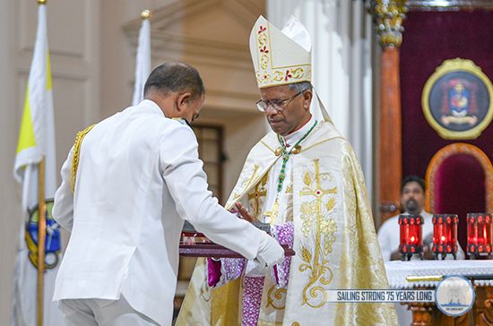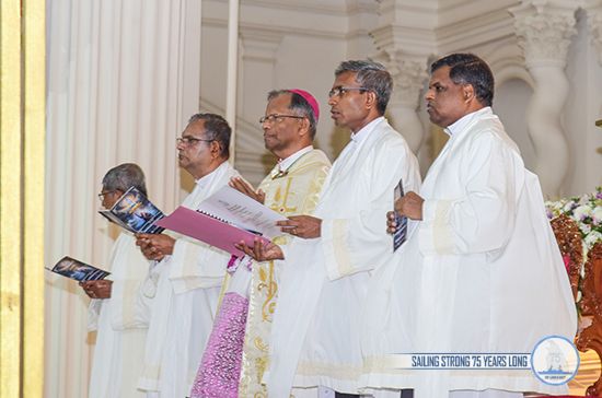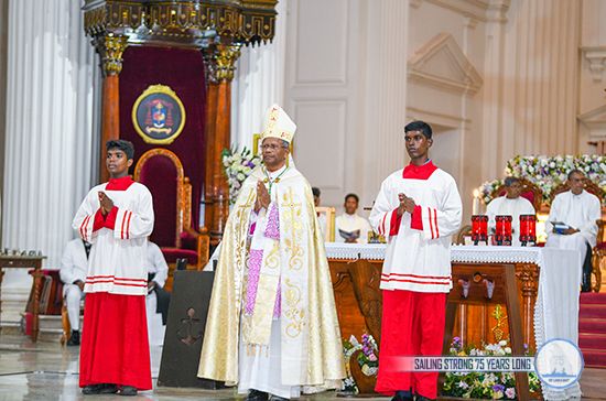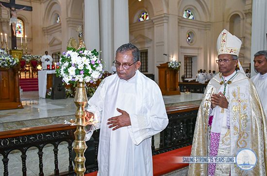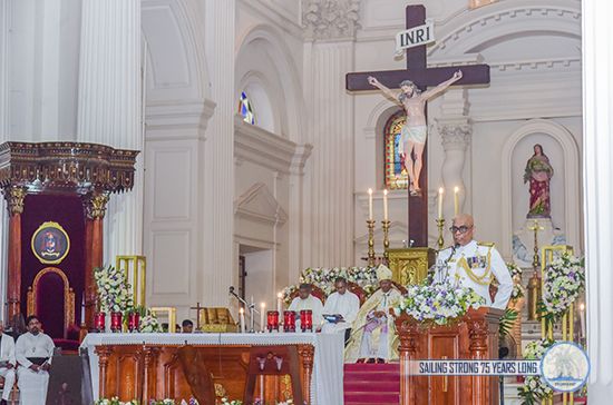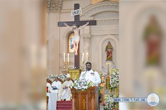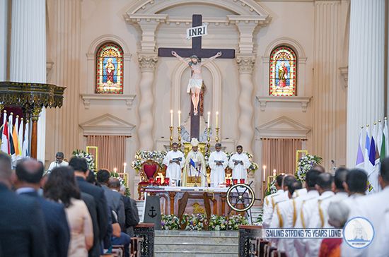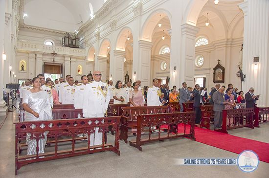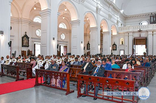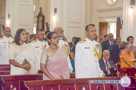 Invoking blessings on the 75th anniversary of the Sri Lanka Navy, celebrated on 09 December, a Joint Christian Commemoration & Thanksgiving Service, organized by the Navy Christian Council, was held at St. Lucia's Cathedral, Kotahena on 21 Nov 25. The event was presided over by the Deputy Chief of Staff and Director General Logistics of the Navy, Rear Admiral Ruwan Kalubowila.