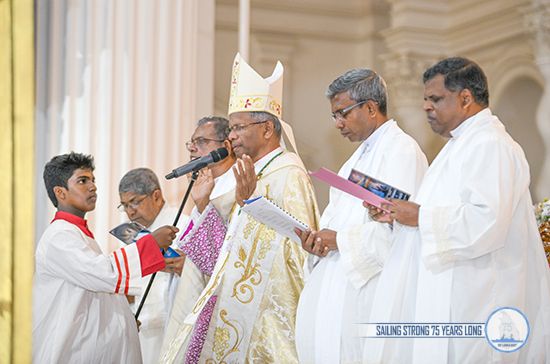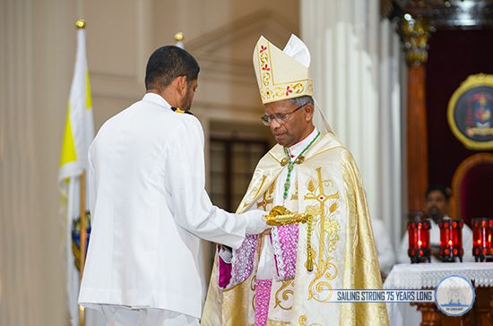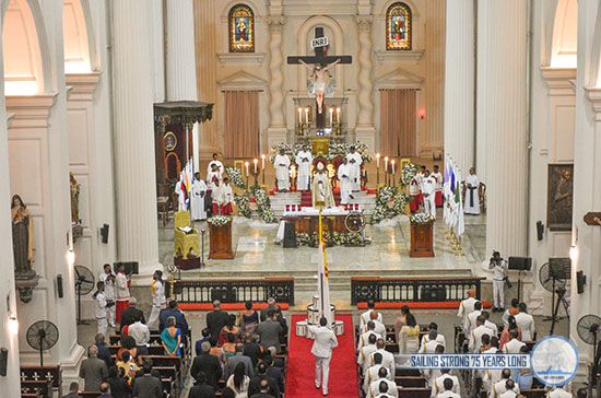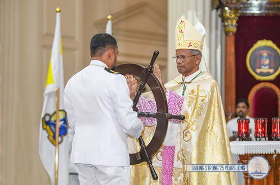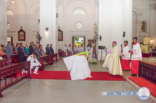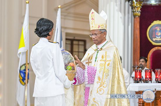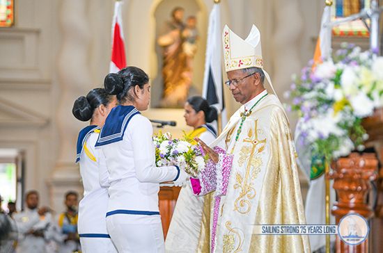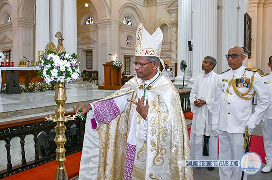 “May the peace and strength of our Lord be with you, who are the guardians of the seas” were the blessings of the Chief Celebrant, Trincomalee Bishop Christian Noel Emmanuel who praised and thanked the Lord for all the achievements that the Sri Lanka Navy made in the past years. The service remembered those who paid the supreme sacrifice in achieving peace to our Motherland. It also remembered all those who served with us and departed due to various causes, all our naval brothers and sisters serving and retired who are sick and disabled to ask the Lord to give them strength and courage to carry their crosses through life and pray for their speedy recovery. During the ceremony special blessings were invoked on Naval Ensign, Naval Command Flags, Naval Fleet and Service men of all nations.