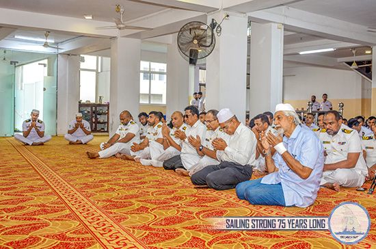 The Islamic prayer session was conducted by Moulavi Ash-Sheikh Kaleelur Rahman. During these Islamic religious rituals merits were transferred on fallen naval war veterans and blessings were invoked on disabled naval war heroes, naval personnel both serving and retired, their family members and the Navy for its anniversary.