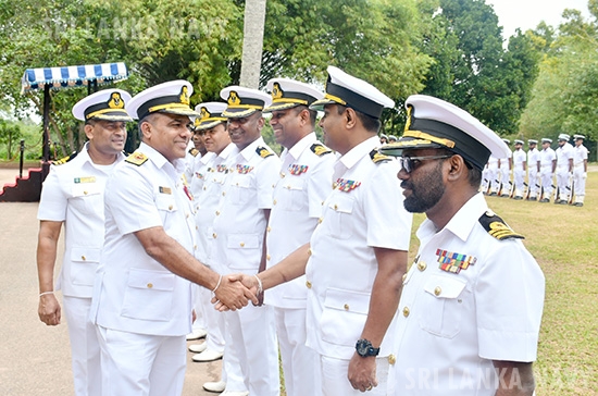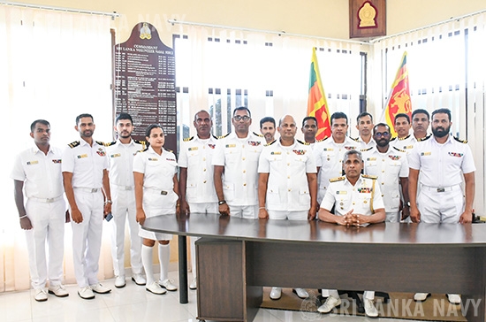 The incoming Commandant VNF was received at the Volunteer Naval Force Headquarters in accordance with time-honoured naval traditions. Thereupon, his predecessor, Rear Admiral Jagath Kumara, formally handed over the duties and responsibilities of the appointment to Rear Admiral Sujeewa Weerasuriya.