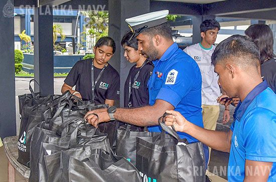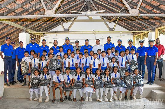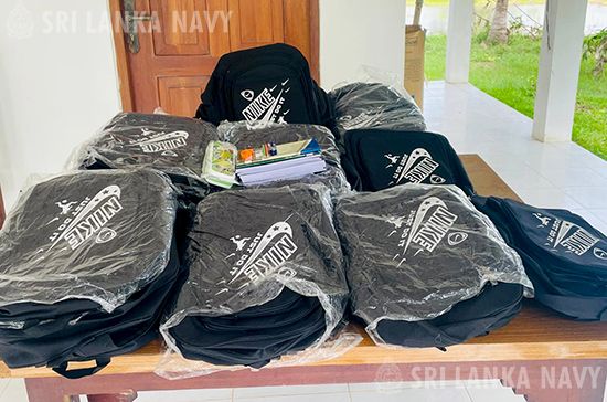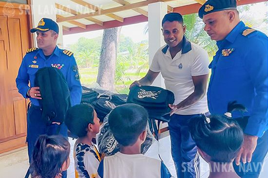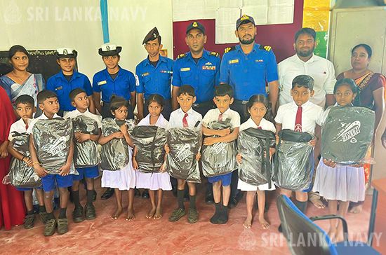In a community partnership, the Navy facilitated the distribution of school bags and supplies donated by Ganlo Travels (Pvt) Ltd. This aid was delivered to school children in the Arachchikattuwa, Eluwankulam, Neelabemma, and Kalpitiya areas of Puttalam District; the Mahawa area of Kurunegala District; and the Pukkulam, Silawathura, and Mollikulam areas of Mannar District.