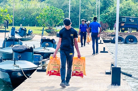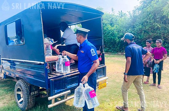 Further supporting relief efforts, the Navy responded to a request from the Wanathavilluwa Divisional Secretary by undertaking the transportation of vital food stocks from the Gangewadiya area to the flood-affected communities in Pukkulam and Palugahathurai for distribution.