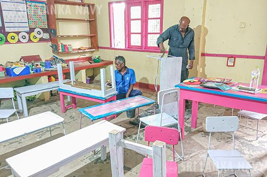 Thus, naval personnel are providing essential technical expertise and support for renovations at Bibilegama Maha Vidyalaya in Badulla, Maussagolla Maha Vidyalaya, Wellagolla Maha Vidyalaya, Al Abim Vidyalaya, Sri Ganeshan Tamil School, Vigneshwaram Tamil School and Mihindu Pre-school.