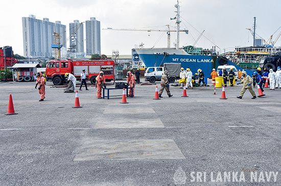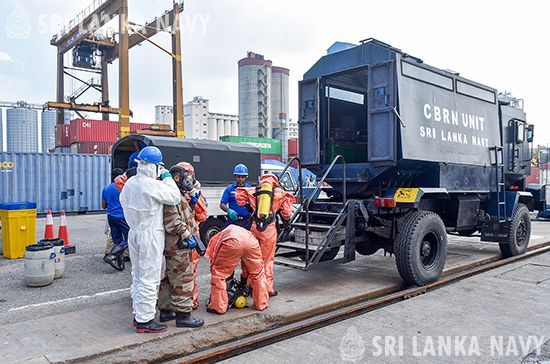 The Sri Lanka Navy hosted a joint Chemical, Biological and Nuclear (CBRN) exercise at the UCT Jetty at port of Colombo ,involving the CBRN Unit of the Western Naval Command and the Sri Lanka Ports Authority(SLPA) fire brigade on 31 Mar 26.