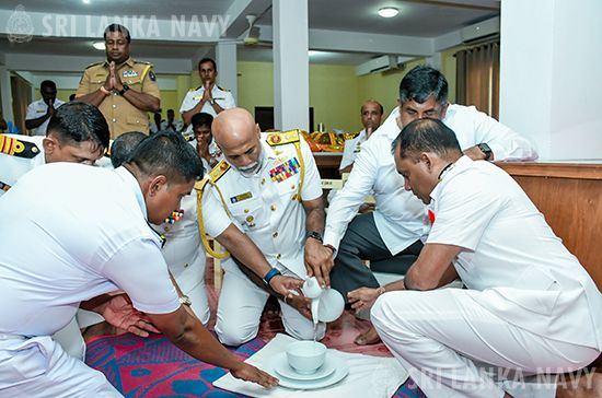 The facilitation for the sacred spiritual observances were graciously extended at the directives of the Commander of the Navy and under the supervision of the Commander Northern Naval Area, also seeking the wise counsel of the Chief Incumbent of Nagadeepa Temple. The observances included an all-night Pirith chanting ceremony on 02 Apr, followed by alms and Pirikara offerings to 32 members of the Maha Sangha the next day.