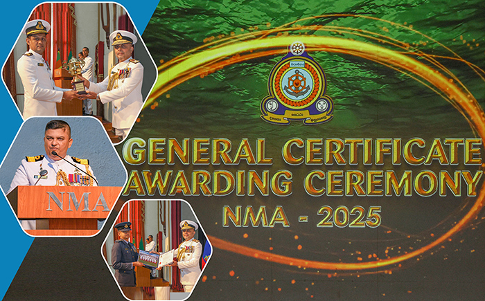 The General Certificate Awarding Ceremony of 37th Junior Naval Staff Course (JNSC) and 23rd Sub Lieutenant Technical Course (Provost/ Infantry) was held at the Auditorium of the Naval and Maritime Academy (NMA), Trincomalee, on 23 Oct 25. The Commander of the Navy, Vice Admiral Kanchana Banagoda, graced the occasion as the Chief Guest, at the invitation of the Commandant NMA, Commodore Dinesh Bandara.