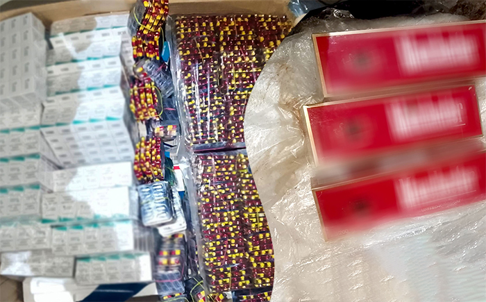 இலங்கை கடற்படையினர் பொலிஸாருடன் இணைந்து 2025 ஆகஸ்ட் 11 ஆம் திகதி இரவு கற்பிட்டி திகாலி பகுதியில் நடத்திய சிறப்பு கூட்டு தேடுதல் நடவடிக்கையின் விளைவாக, முந்நூற்று எழுபத்தொன்பது (379) கிலோகிராமை விட அதிகமான பீடி இலைகள், ஆறாயிரம் (6000) வெளிநாட்டு சிகரெட்டுகள், இருநூற்று எண்பத்தோராயிரத்து இருநூறு (281200) மருந்து மாத்திரைகள் மற்றும் ஆயிரத்து இருநூற்று தொண்ணூற்றொன்று (1291) மருந்து ஊசிகளுடன் சட்டவிரோதமாக நாட்டிற்கு கொண்டு வரப்பட்டதாக சந்தேகிக்கப்படும் ஒரு (01) சந்தேக நபருடன் பறிமுதல் செய்யப்பட்டன.