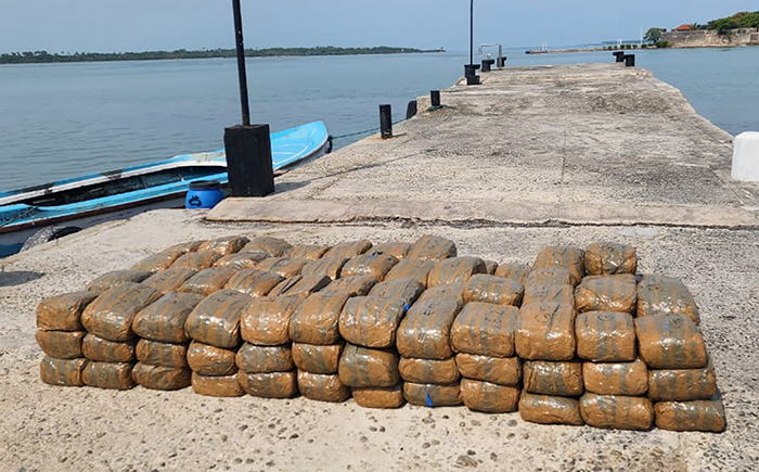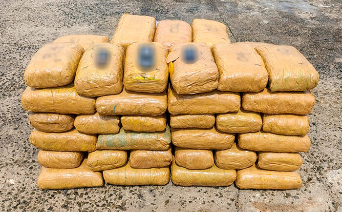 A coordinated search operation mounted by the Sri Lanka Coast Guard, the Navy and Police Narcotic Bureau led to the seizure of over 900kg of Kerala cannabis in Bolawatta area in Wennappuwa on 02 Jul 25. The operation also led to the interception of a car in connection to the smuggling racket and a cab in which 02 foreign-made pistols, 04 magazines and 40 rounds of ammunition were found.