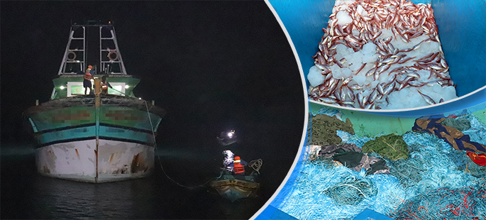 The Sri Lanka Navy conducted a special operation to chase away Indian poaching trawlers from Sri Lankan waters on the night of 03rd February 2024. The operation resulted in the seizure of 02 Indian trawlers and apprehension of 23 Indian nationals poaching in northern waters of Sri Lanka, off the Delft Island in Jaffna.