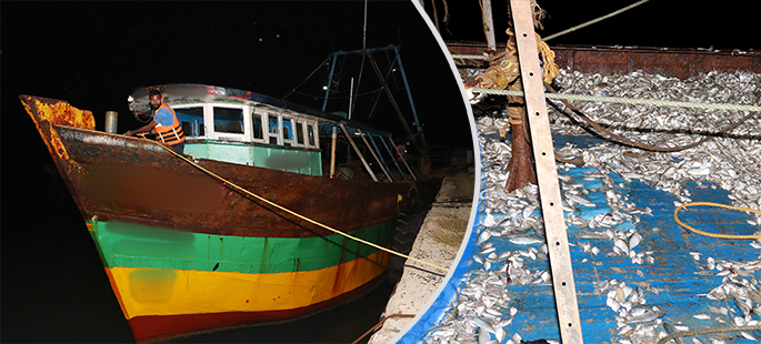 Navy takes hold of a poaching trawler in Sri Lankan waters