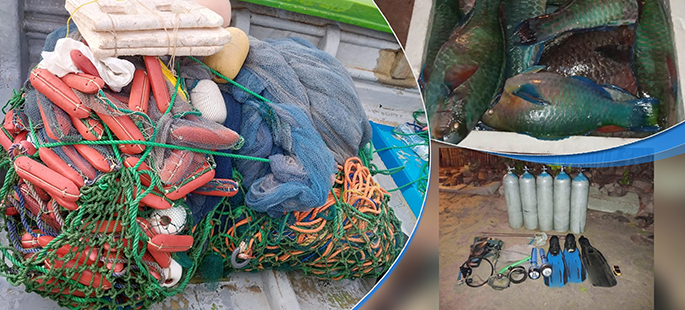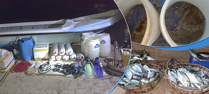 The Navy apprehended 12 persons who engaged in illegal fishing practices, during special operations conducted in the beach areas of Nilaweli and Kinniya in Trincomalee and the sea area of Chalai in Jaffna on 9th, 10th and 11th September 2023. The operation also led to the seizure of 4 dinghies and unauthorized fishing equipment and diving gear used for the illegal acts.