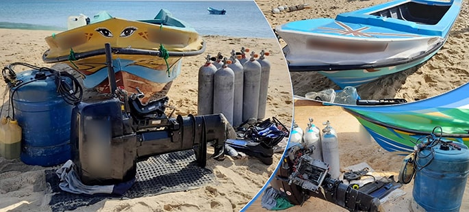 The Sri Lanka Navy apprehended 08 persons who engaged in illegal fishing practices, during a special operation carried out on 16th June 2023 in the sea area of Mamunai of Veththalakerni, Jaffna. The operation also led to the seizure of 04 dinghies and diving gear used for this illegal act.