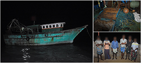 Sri Lanka Navy conducted a special operation to chase away Indian trawlers poaching in northern waters of the island in the evening of 11th July 2022. Accordingly, the operation led to the seizure of an Indian trawler with 06 Indian fishermen poaching in Sri Lankan waters off the Kovilan Lighthouse.