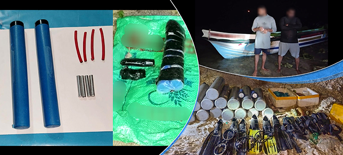 In separate search operations conducted by the Navy from 26 May to 07 Jun 25, seventy-six (76) individuals involved in various illegal fishing activities were apprehended in multiple locations. The operations also made way for the seizure of 20 dinghies employed for these illegal practices.