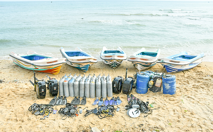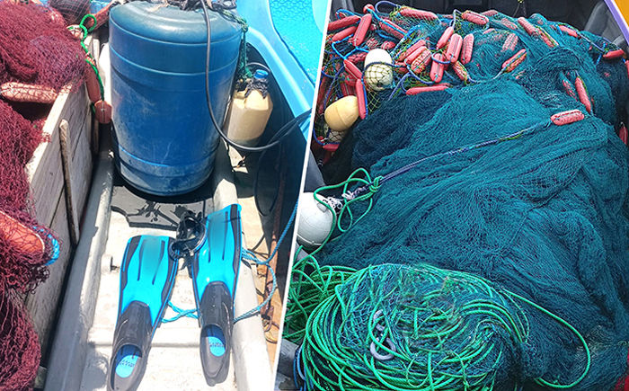 The Navy apprehended 07 persons for their involvement in illegal fishing practices, during separate operations conducted in the beach and sea areas of Kinniya, Sinnaweli, Sallimunei, Nandikadal, and Vankalai from 19 to 24 Feb 25. The individuals had engaged in night diving and used explosives, when they were apprehended. The operations also resulted in the seizure of 02 fishing boats, 65 unauthorized nets, 04 detonators, 02 gelignite sticks and 04 safety fuses.