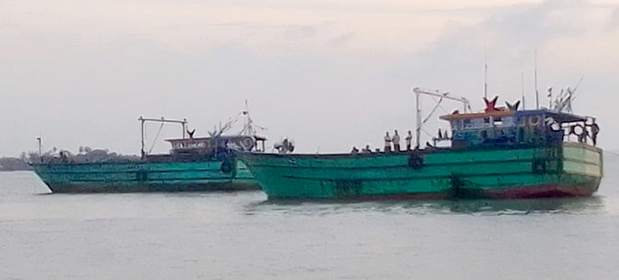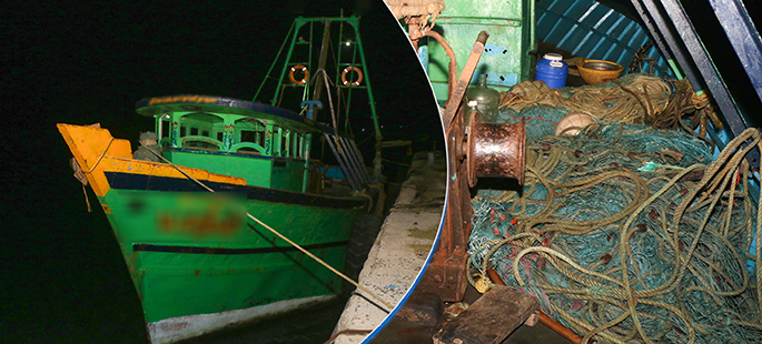 Two (02) Indian trawlers poaching in Sri Lankan waters seized