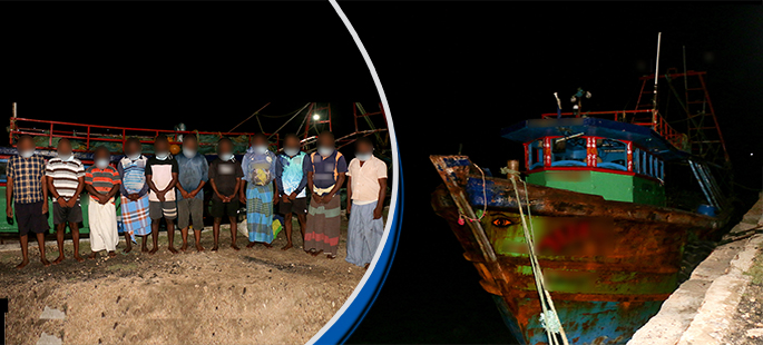 A coordinated operation conducted by the Sri Lanka Navy and Coast Guard led to the seizure of 04 Indian dhows poaching in Sri Lankan waters and apprehension of 35 Indian fishermen. The special operation was conducted off the Kudiramalei Point in northwestern seas, south of Mannar on 08th August 2024.
