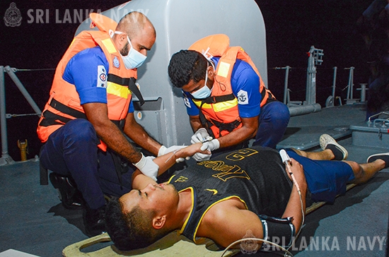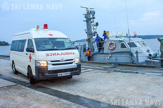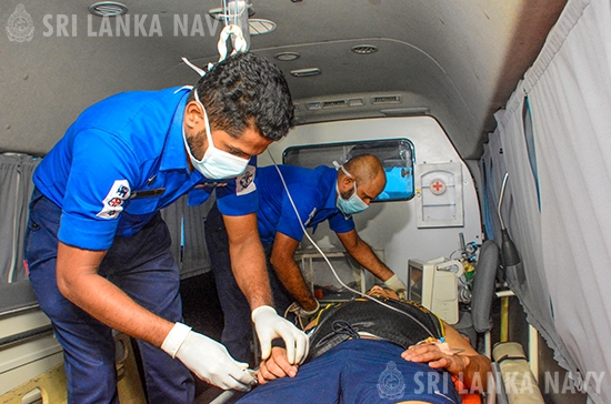 ඒ අනුව, අසාධ්යව සිටි පිලිපීන ජාතික රෝගියා නාවික හමුදා යාත්රාව වෙත ලබාගැනීමෙන් පසු, මූලික ප්රථමාධාර ලබාදෙමින් කඩිනමින් ත්රිකුණාමලය වරාය වෙත රැගෙන ඒමෙන් අනතුරුව, වැඩිදුර ප්රතිකාර සඳහා මෙලෙස ත්රිකුණාමලය මහා රෝහල වෙත යොමුකිරීමට කටයුතු කෙරිණි.