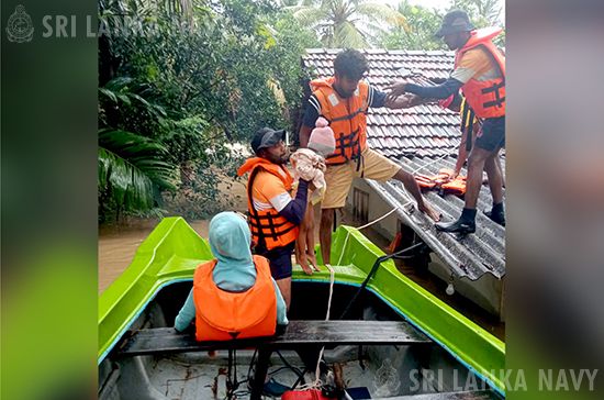The Western Naval Command conducted disaster relief operations across the Colombo, Kandy, Ratnapura, Puttalam, Kurunegala, Kegalle, and Gampaha districts, rescuing 303 individuals and ensuring the safe transport of 478 people. Meanwhile, the Southern Naval Command carried out relief efforts in the Galle district, rescuing 22 people and safely transporting 355 others.