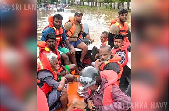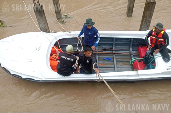 The Eastern Naval Command conducted flood relief operations in Trincomalee, Batticaloa, and Polonnaruwa districts, rescuing 195 people whose lives were at risk and safely transporting 1,632 others. Meanwhile, the Northwestern Naval Command carried out similar operations in Puttalam and Kurunegala districts, rescuing 580 people and ensuring the safe transport of 3,924 individuals.