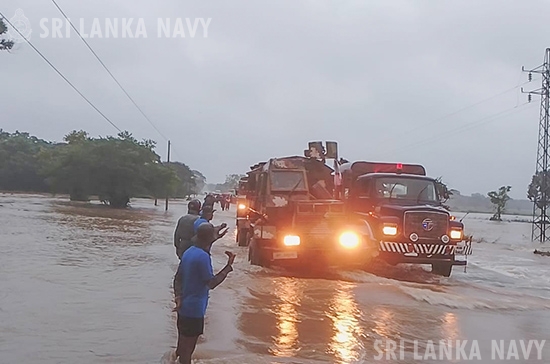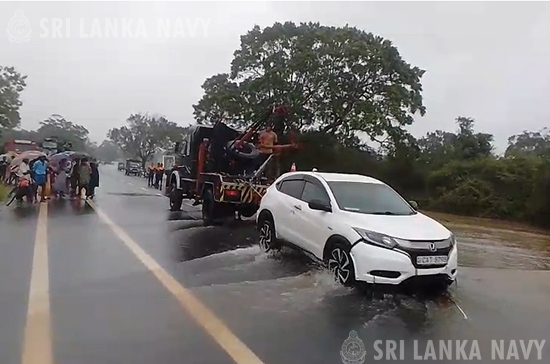 The Navy extended timely assistance to a stranded vehicle in Chettikulam, Vavuniya, after heavy rainfall triggered flooding in the area.