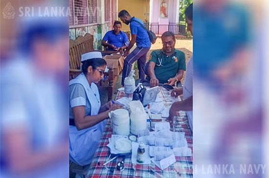 A medical clinic was organized by the Amithirigala Medical Office of Health at Gurugalle Junior College, Avissawella, on 30 Nov 25, to support residents affected by severe flooding triggered by adverse weather conditions. The Navy rendered assistance for this cause, providing essential support and relief to the communities impacted by the floods.