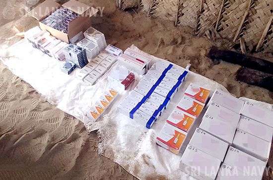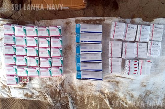 In a similar search conducted by the Naval Detachment Thalpadu of SLNS Gajaba in the North Central Naval Command, the suspicious dinghy approaching the Keeri beach was intercepted, leading to the seizure of smuggled prescription drugs, spices and cosmetics.