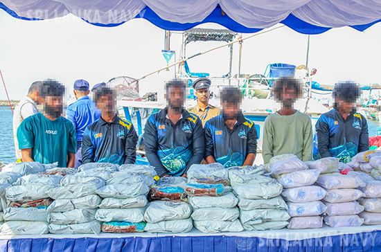 හෙරොයින් සහ අයිස් මත්ද්‍රව්‍ය කිලෝ ග්‍රෑම් 335ට අධික තොගයක් රැගත් බහුදින යාත්‍රාවක් සමඟ සැකකරුවන් 06ක් බටහිර දිග ගැඹුරු මුහුදේදී නාවික හමුදා භාරයට