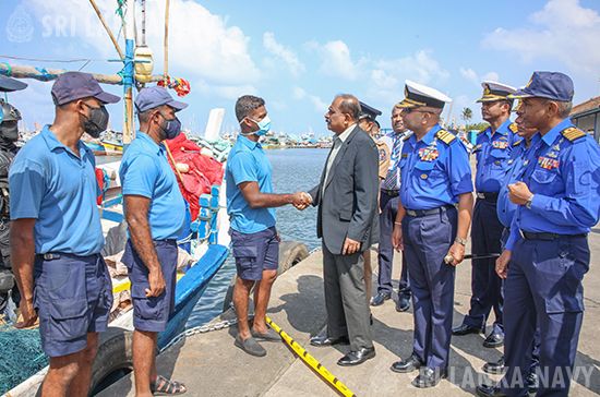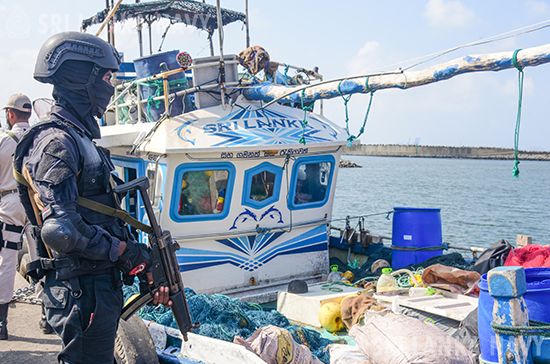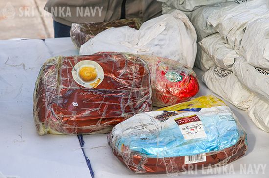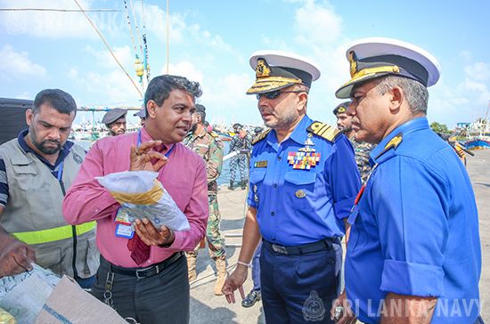 නාවික හමුදාව, ශ්‍රී ලංකාවට බටහිර දිග ගැඹුරු මුහුදේ සිදුකල විශේෂ නාවික මෙහෙයුමකදී, විෂ මත්ද්‍රව්‍ය අඩංගු බවට සැකකෙරෙණ උර තොගයක් ප්‍රවාහනය කරමින් තිබූ දේශීය බහුදින ධීවර යාත්‍රාවක් සමඟ සැකකරුවන් හය දෙනෙකු (06) නාවික හමුදා භාරයට ගැනීමට කටයුතු කෙරිණි. එම බහුදින ධීවර යාත්‍රාව සහ සැකකරුවන් අද උදෑසන (2025 නොවැම්බර් 02) දික්ඕවිට ධීවර වරායට රැගෙනවිත් පොලිස් මත්ද්‍රව්‍ය නාශක කාර්යංශය සිදුකල විශේෂඥ පරීක්‍ෂාවේදී, මත්ද්‍රව්‍ය බවට සැක කෙරෙණ උර තුල අයිස් මත්ද්‍රව්‍ය කිලෝ ග්‍රෑම් 250ක‍ට අධික තොගයක් සහ හෙරොයින් මත්ද්‍රව්‍ය කිලෝ ග්‍රෑම් 85කට අධික තොගයක් ඇති බවට තහවුරු වූ අතර, එම මත්ද්‍රව්‍ය තොගය නිරීක්‍ෂණය සඳහා ගරු ආරක්‍ෂක නියෝජ්‍ය අමාත්‍ය මේජර් ජෙනරාල් අරුණ ජයසේකර මැතිතුමා සහ නාවික හමුදාධිපති වයිස් අද්මිරාල් කාන්චන බානගොඩ සහභාගී විය.