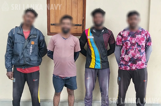The four suspects held in this operation were identified as residents of the Thorayadi area in Kalpitiya between the ages of 25 and 32. The suspects, the seized stock of smuggled items, and the dinghy were handed over to the Katunayake Customs Preventive Office for subsequent legal proceedings.