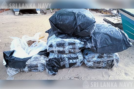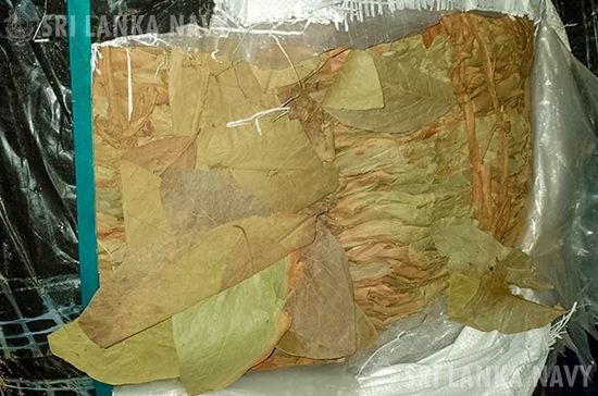 In another search operation conducted by the Rapid Action Boats Squadron (RABS) Headquarters in the Northwestern Naval Command in the Karukapane Lagoon, naval personnel seized about 229kg of Kendu leaves in 06 sacks, from 02 dinghies.
