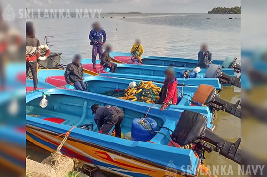 The apprehended suspects, along with the seized dinghies and illegal fishing gear, were handed over to the Puttalam Fisheries and Aquatic Resources Department, the Sri Lanka Coast Guard Office in Galle, and the Jaffna Fisheries Inspector for legal action.