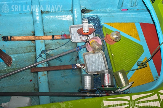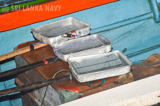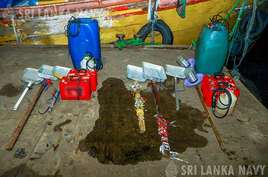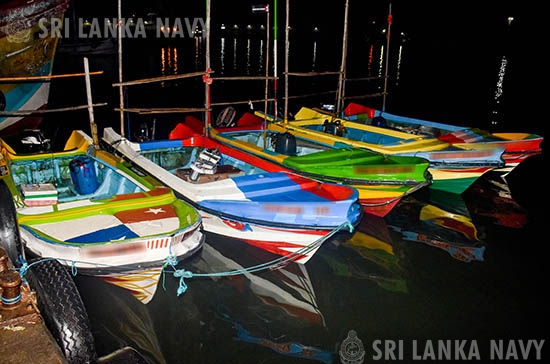 During these operations, naval personnel apprehended thirteen (13) dinghies and twenty-five (25) persons for utilizing prohibited fishing nets, explosives, and other illegal methods. These apprehensions were made by the Northwestern Naval Command in areas off Kandakkuliya and the Southern Naval Command in the sea areas of Galle, Balapitiya and Akurala.