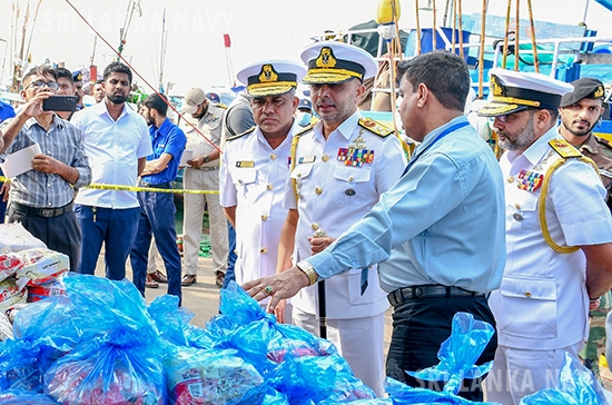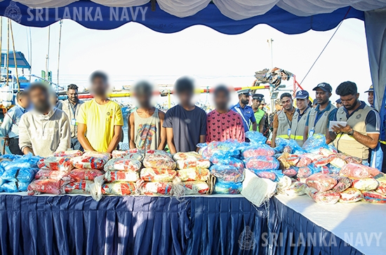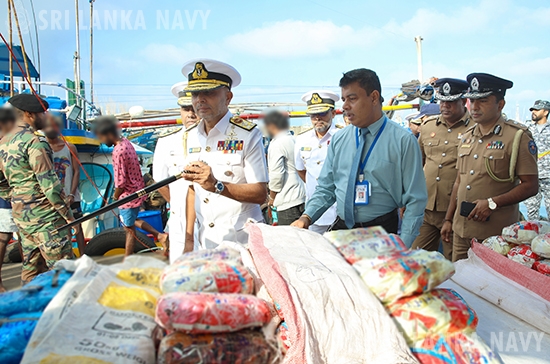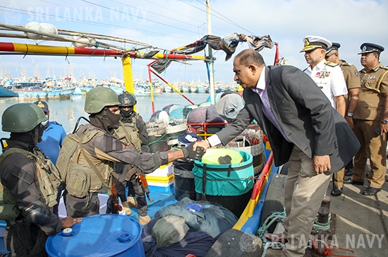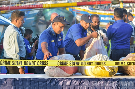 The seized narcotics stock was inspected by the Deputy Minister of Defence, Major General Aruna Jayasekara (Retd) together with the Commander of the Navy, Vice Admiral Kanchana Banagoda and the Inspector General of Police, Mr. Priyantha Weerasuriya.