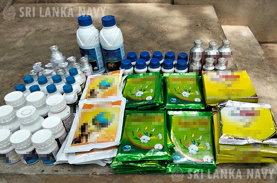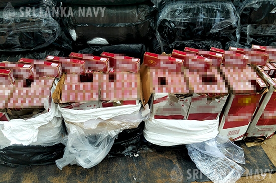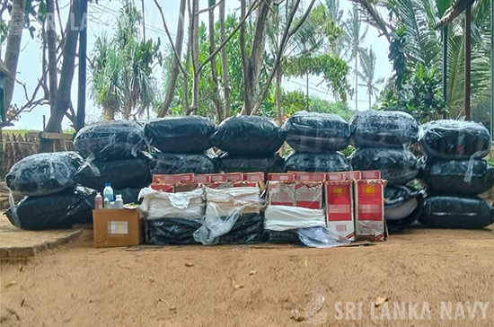 The search operations were conducted by SLNS Vijaya of the Northwestern Naval Command, working alongside the Coast Guard, leading to the recovery of 25 sacks of Kendu leaves weighing over 992kg, 14 packs holding 140,000 foreign cigarettes and a box of pesticides. It is suspected that smugglers would have abandoned the stock due to heightened naval surveillance in the areas.